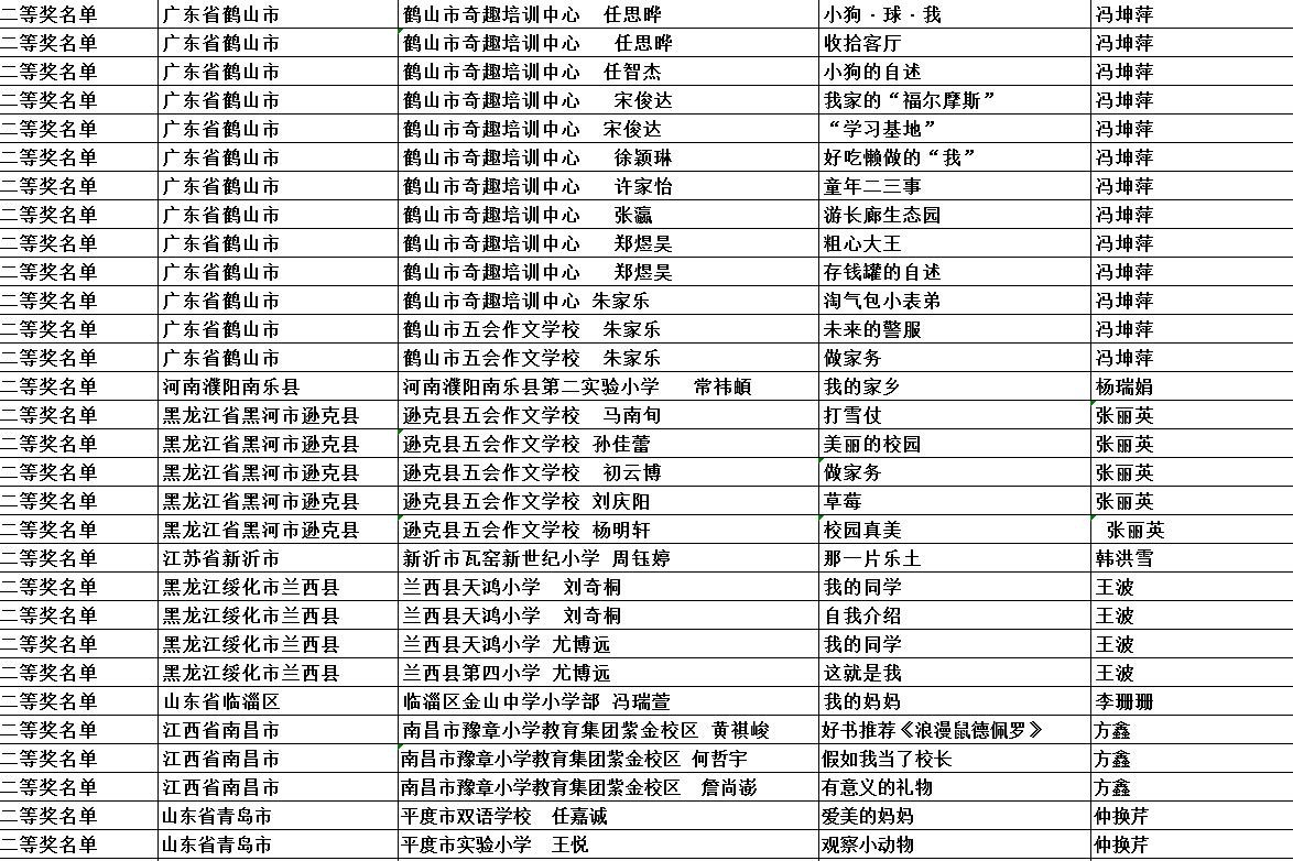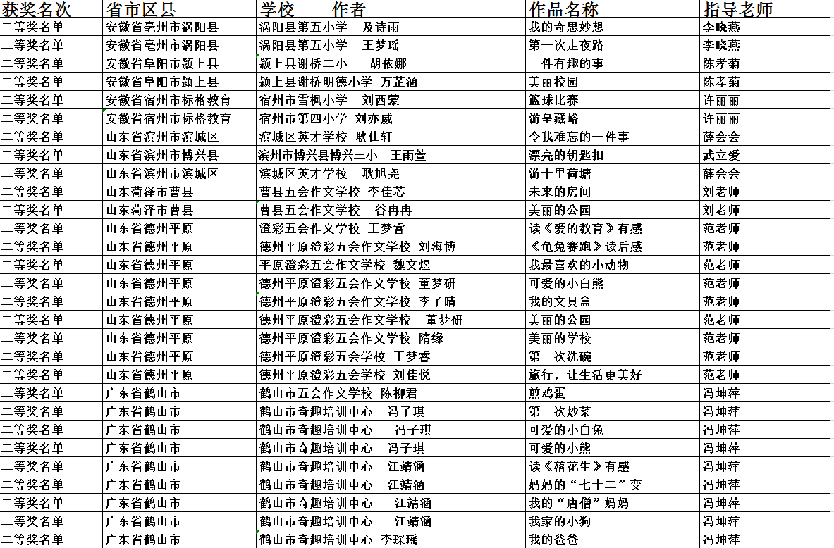获得一等奖和二等奖的学生名单将在五会作文总部官网和微信公众平台上公布,一等奖的部分作品还将被收藏保存,将来编入五会作文教材中。